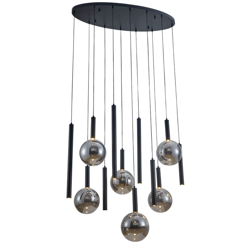 Metal Pendant with Smoke Colour Glass Shades